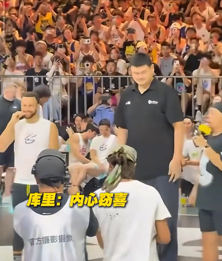 最逗的是,1米88的库里,站在2米26的姚明面前,还做出了一副秀肌肉的样子,十分可爱!