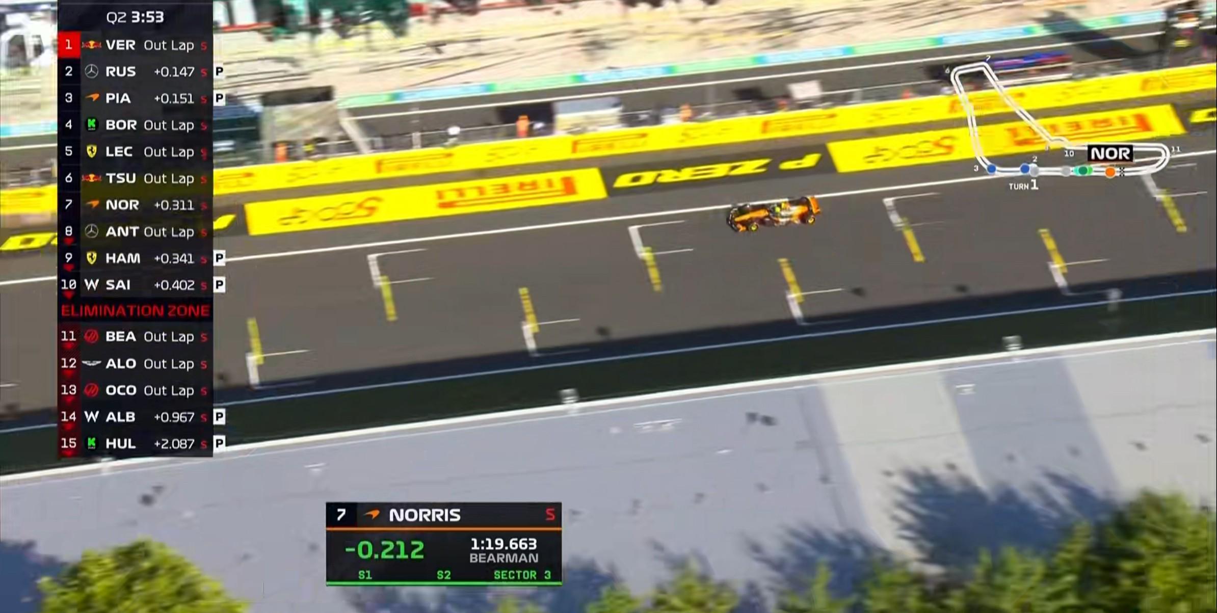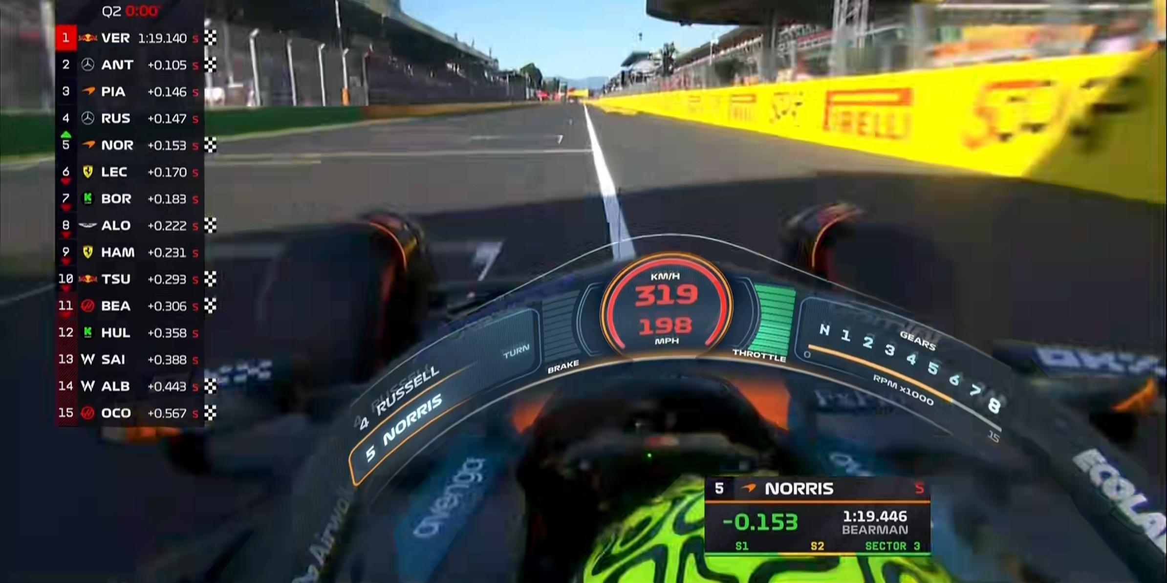 诺里斯在最后时刻完成冲线,第二段刷黄的情况下绝杀贝尔曼惊险晋级Q3!